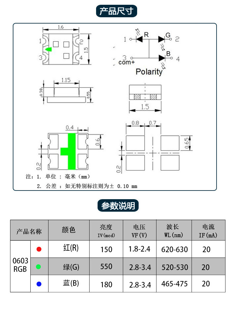 0603RGB貼片燈珠氛圍燈